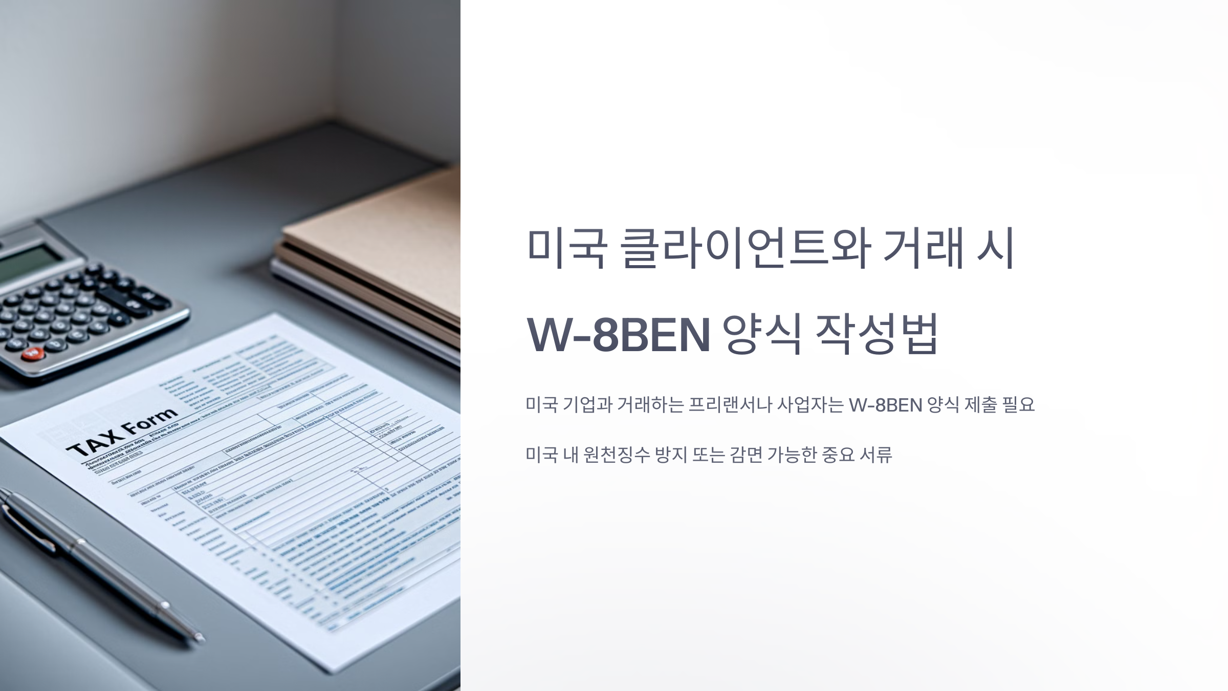 해외 클라이언트 중 특히 미국 기업과 거래하는 프리랜서나 사업자라면, 세금 관련 서류 중 W-8BEN 양식을 제출해야 합니다. 이 양식은 미국 내 원천징수를 방지하거나 감면받을 수 있는 중요한 서류이므로, 올바르게 작성하는 것이 매우 중요합니다. 이번 글에서는 W-8BEN 양식의 역할과 작성법, 그리고 세금 감면 혜택을 받는 방법을 정리해 보겠습니다.