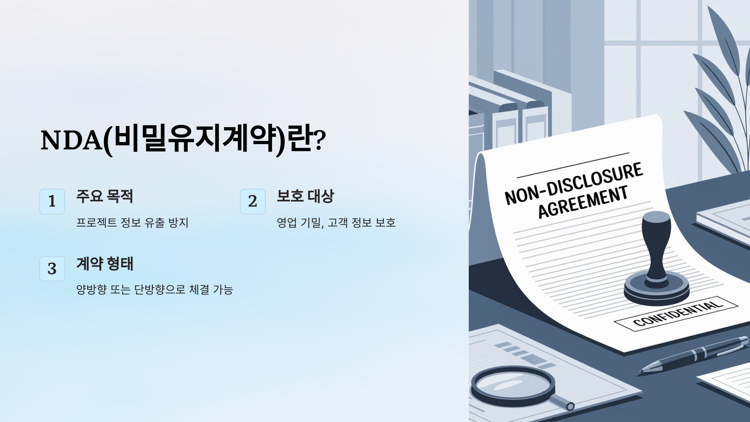 🔹 팁: NDA의 용어가 복잡한 경우, 법률 전문가의 검토를 받는 것이 안전합니다.