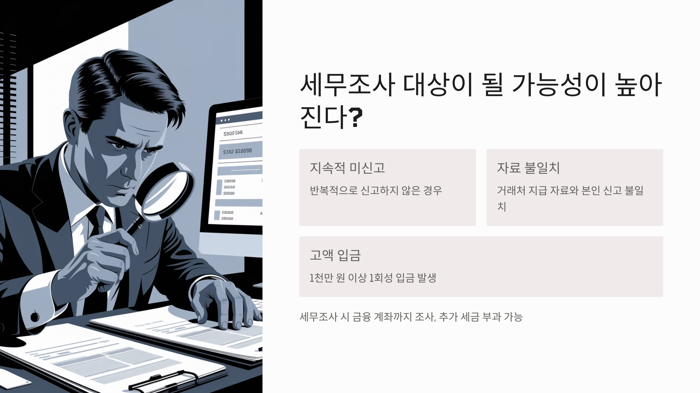 ✔ 신고를 계속 누락하면 세무조사 대상이 될 수도 있음