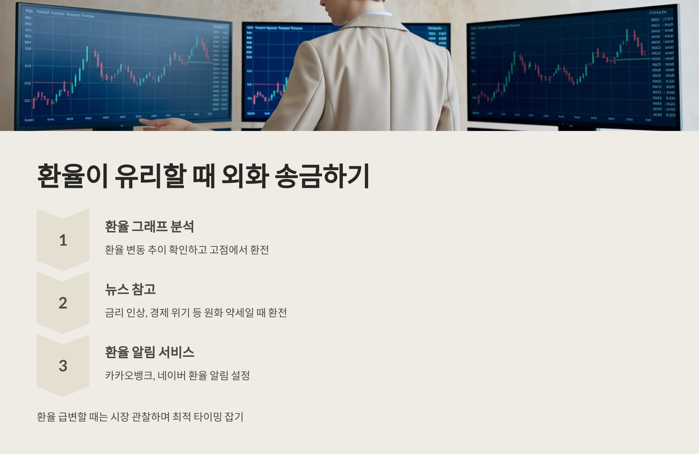 🔹 포인트: 환율이 불리할 때 환전하면 손해를 볼 수 있으므로, 적절한 전략이 필요합니다.