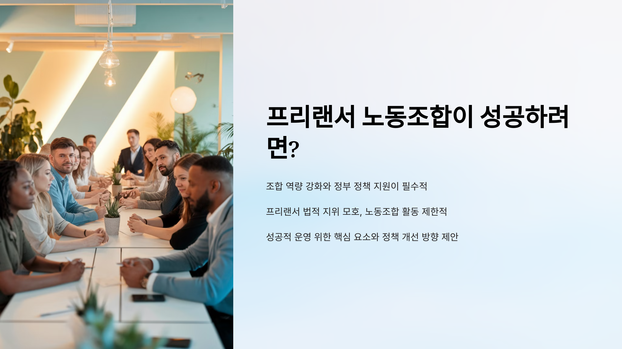📌 2. 프리랜서 노동조합 성공을 위한 정책 개선 방향