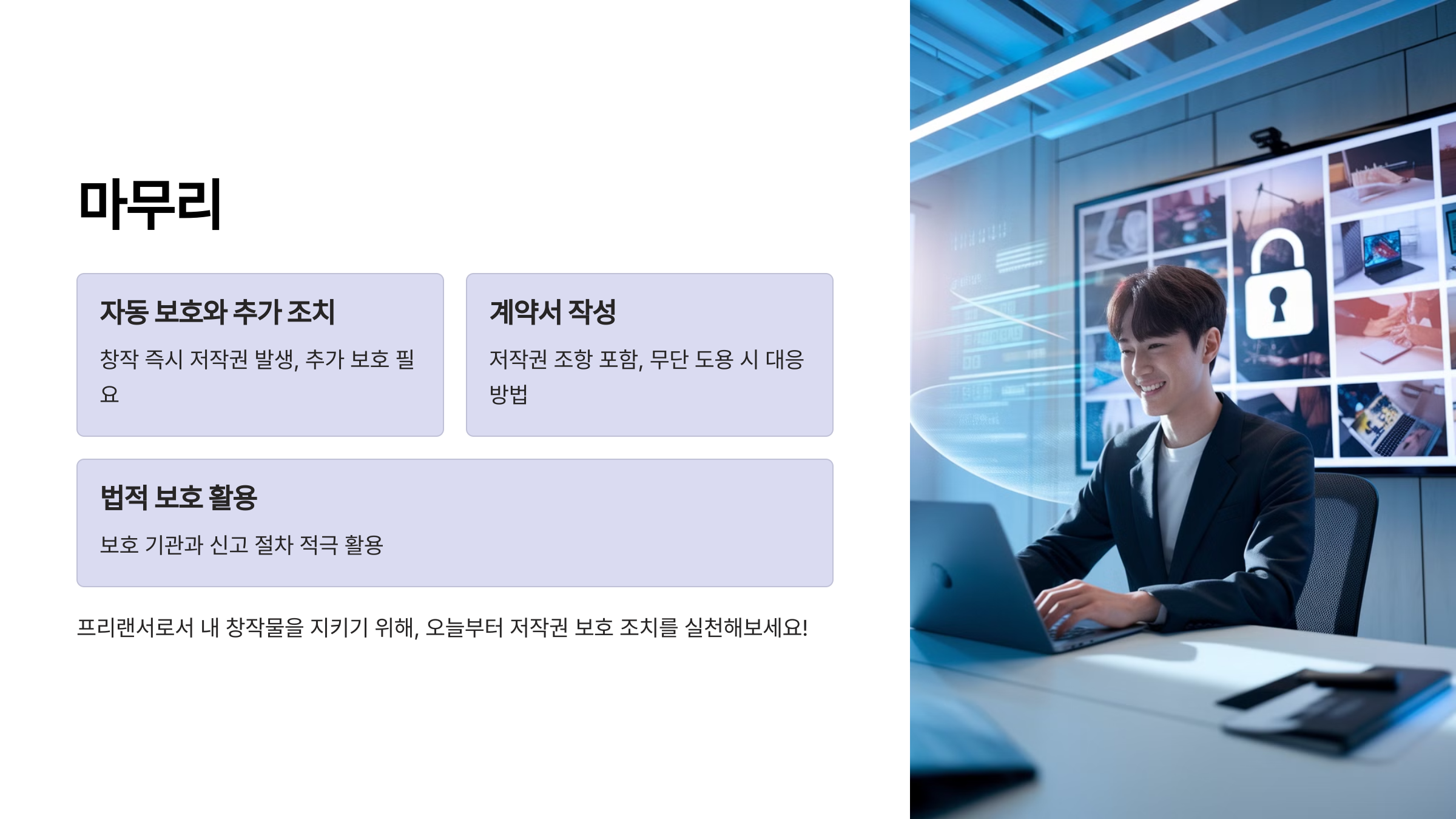 🚀 프리랜서로서 내 창작물을 지키기 위해, 오늘부터 저작권 보호 조치를 실천해보세요!