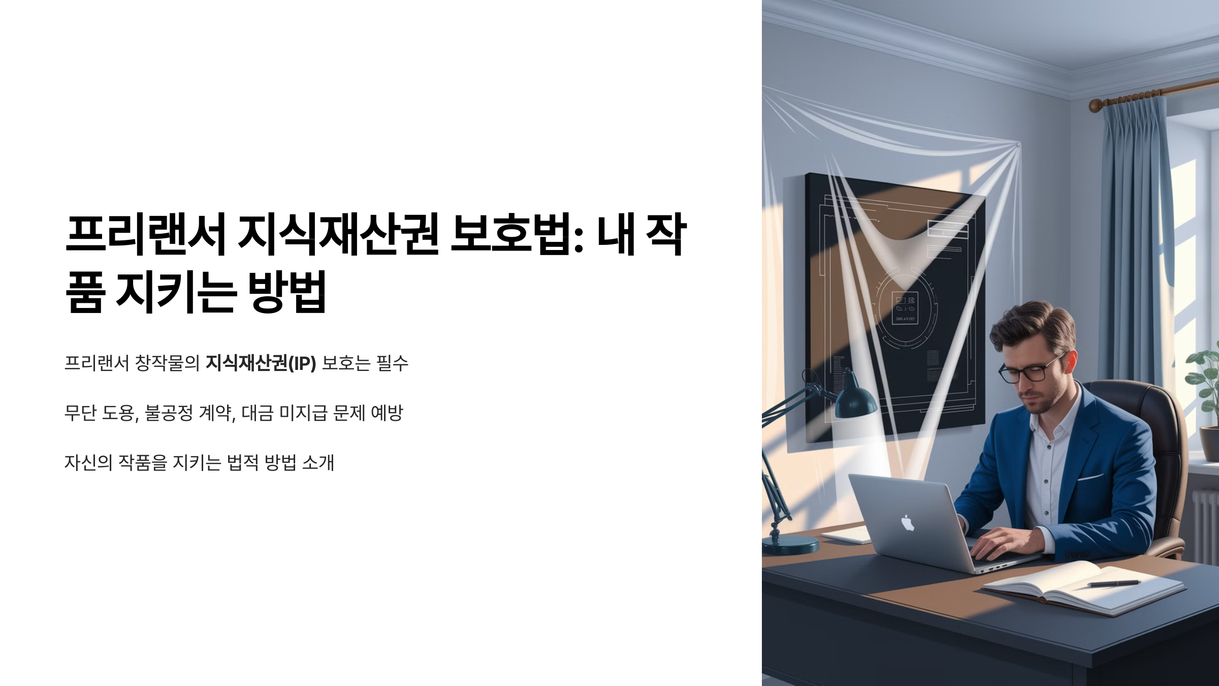 프리랜서로 활동하면서 창작한 콘텐츠, 디자인, 소프트웨어 등의 **지식재산권(Intellectual Property, IP)**을 보호하는 것은 매우 중요합니다. 계약 없이 작업물을 제공하거나 저작권 보호 절차를 생략하면 무단 도용, 불공정 계약, 대금 미지급 등의 문제가 발생할 수 있습니다. 이 글에서는 프리랜서가 자신의 작품을 지키는 법적 방법을 정리해드립니다.