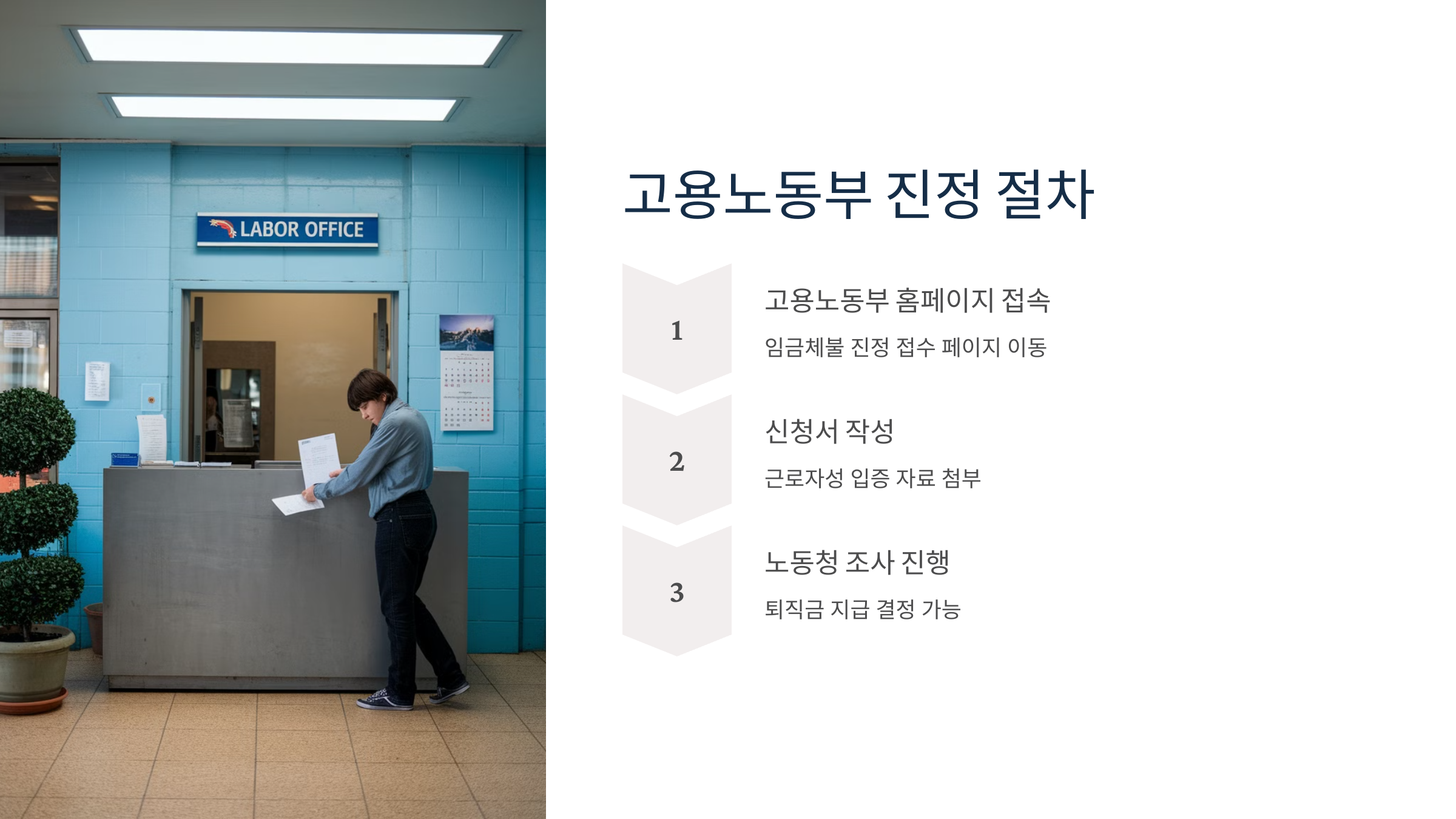 ✅ 2단계: 고용노동부에 진정 또는 신고