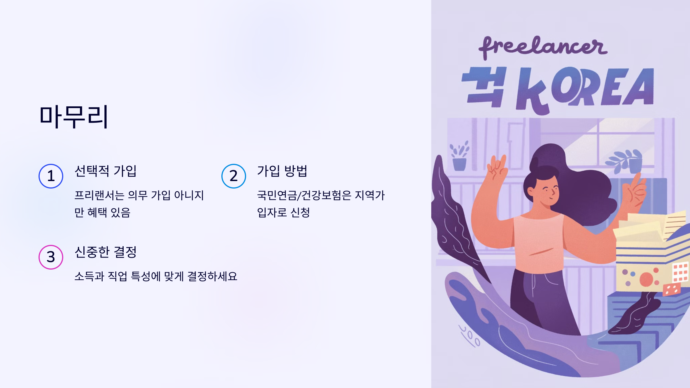 📌 여러분의 프리랜서 활동에 가장 적합한 보험은 무엇인가요? 가입 여부를 꼼꼼히 따져보고 결정해보세요! 🚀