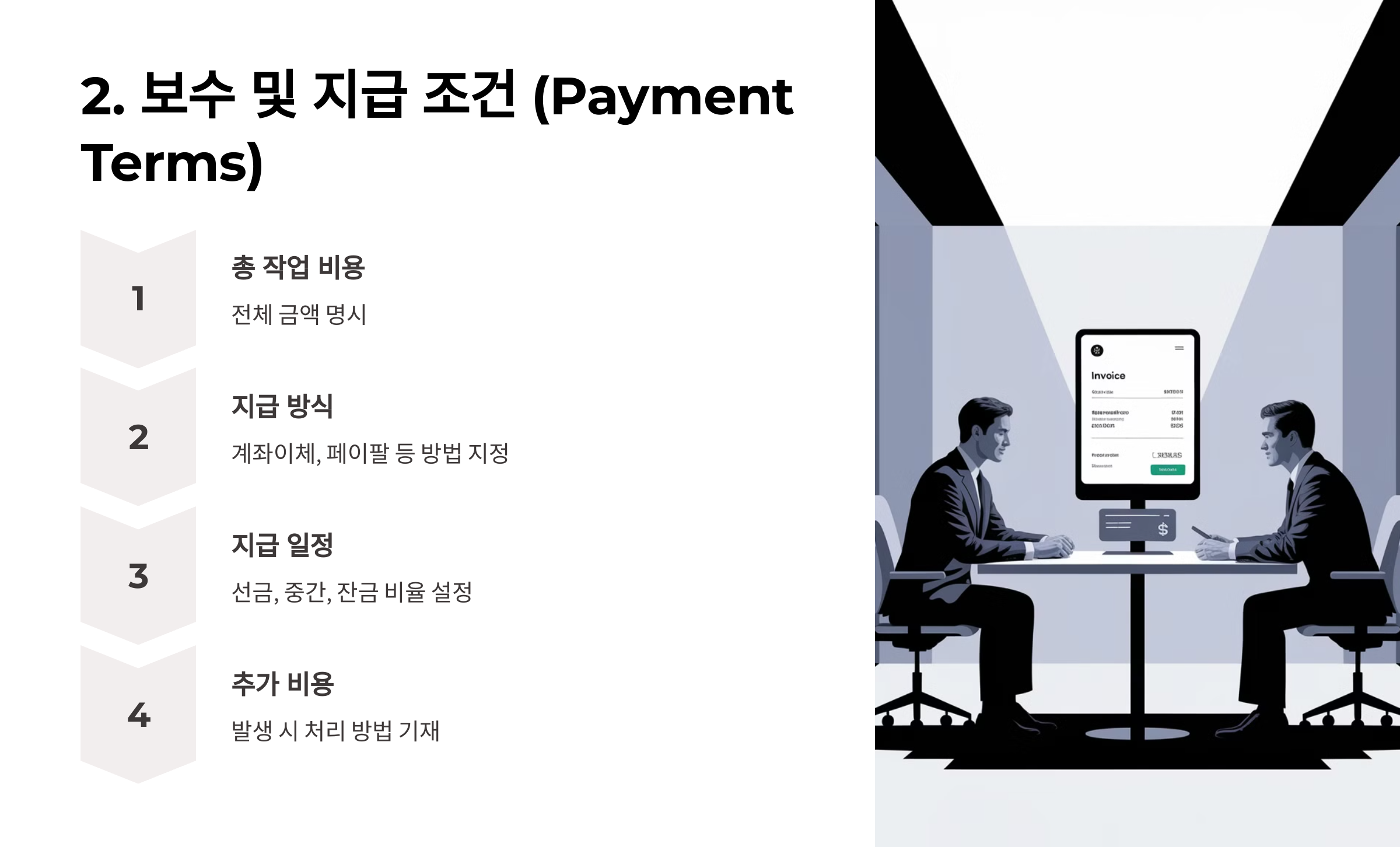 ✅ 2. 보수 및 지급 조건 (Payment Terms)
