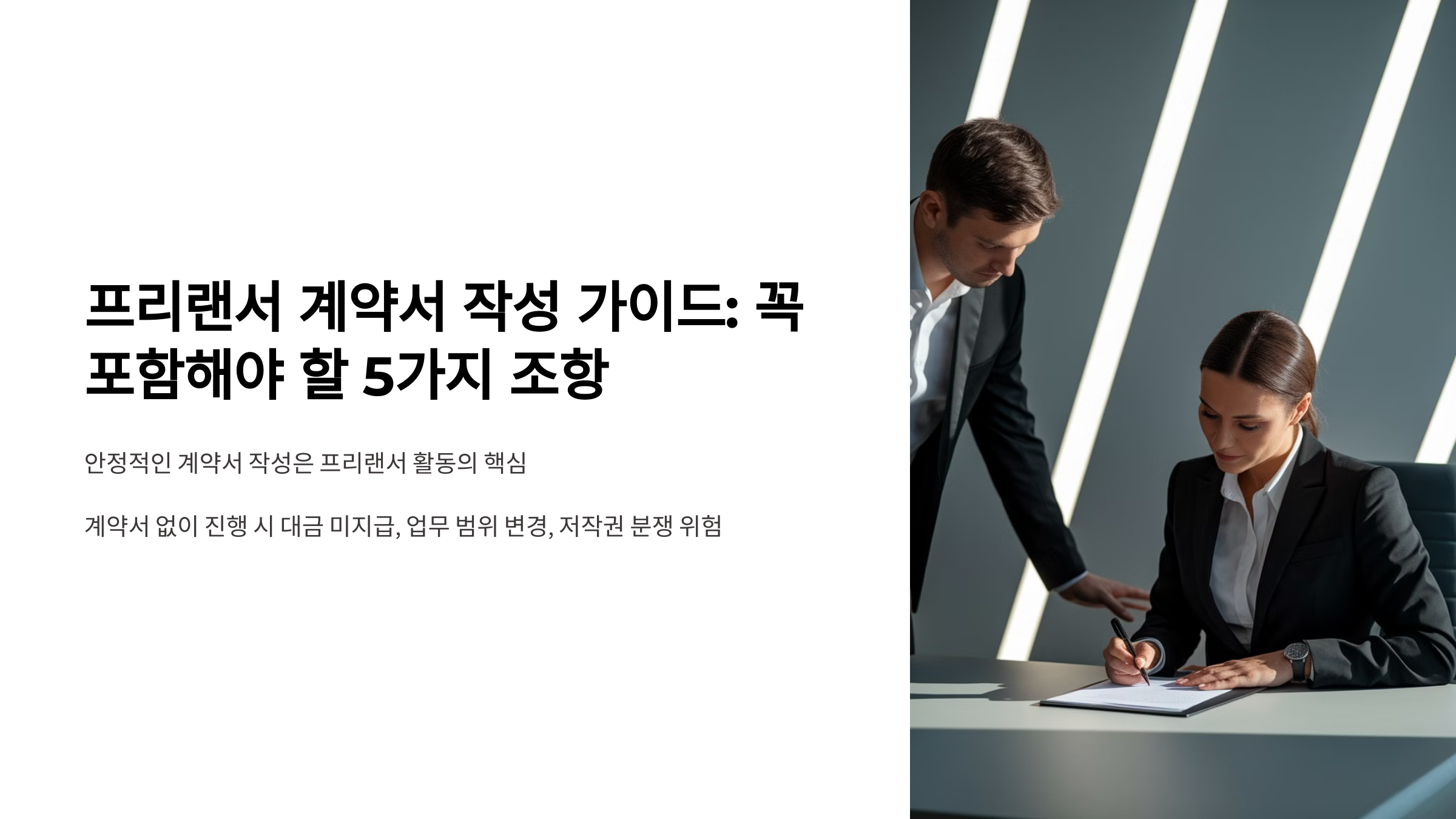 📌 팁: 표준 계약서가 필요하다면 대한민국 표준 프리랜서 계약서 양식을 참고하거나, 변호사 상담을 받는 것도 좋은 방법입니다.
